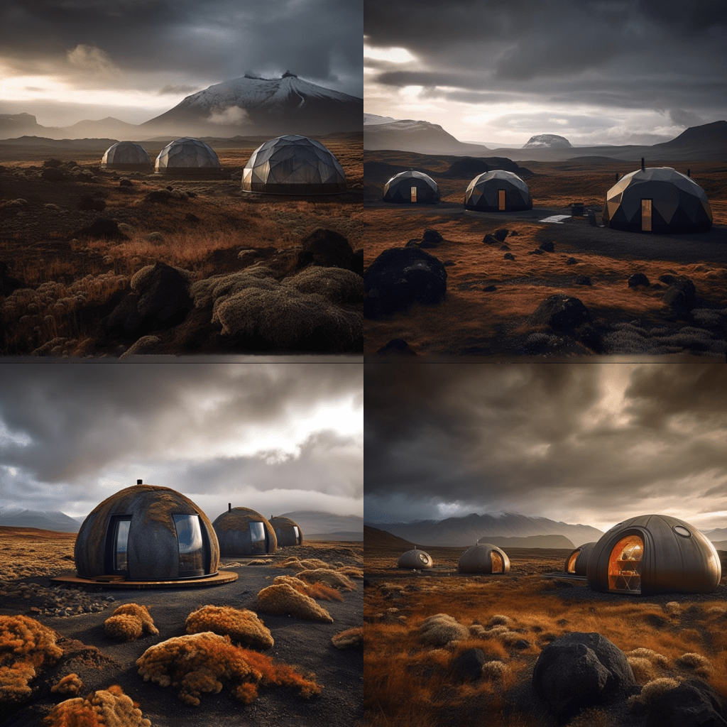 For this step, I used Midjourney to imagine what our little sustainable, tech-friendly EcoPods in Iceland might look like: