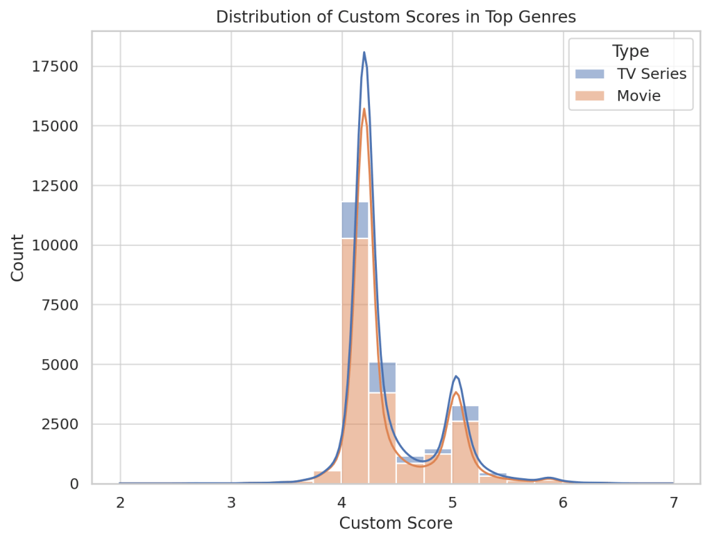 I then had ChatGPT mark the titles I had already seen (using data from the first file) and create our very own custom recommendation score, half based on my unique personal preferences and half based on IMDB ratings and number of user votes.