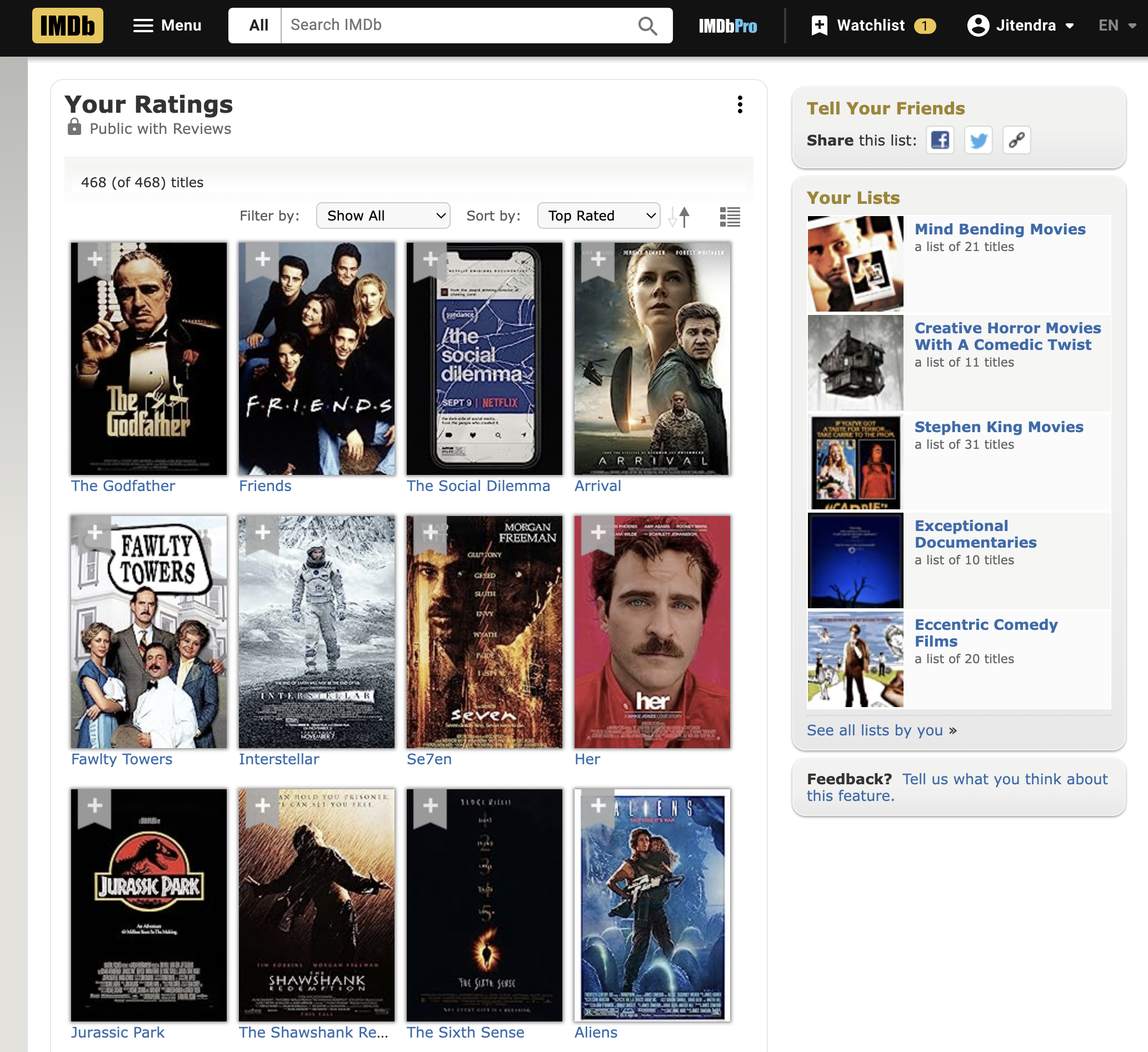 The first thing I did was provide ChatGPT data on over 450 different movies and TV shows I had seen and rated personally.