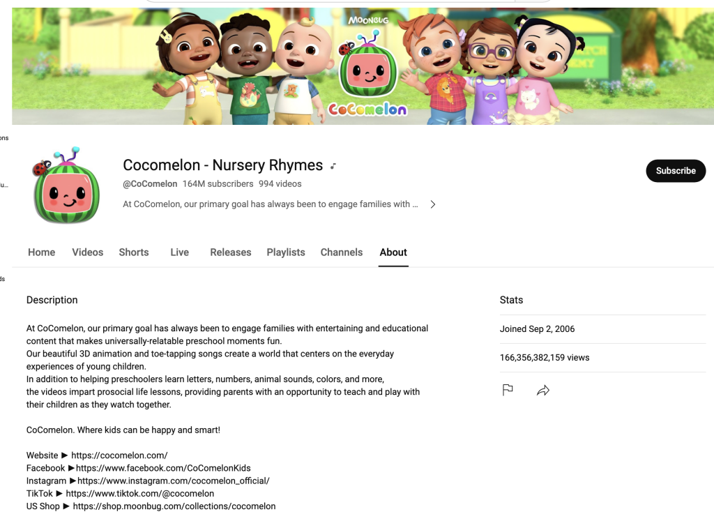 - Education: Channels in this category often feature content related to nursery rhymes and kids’ songs.