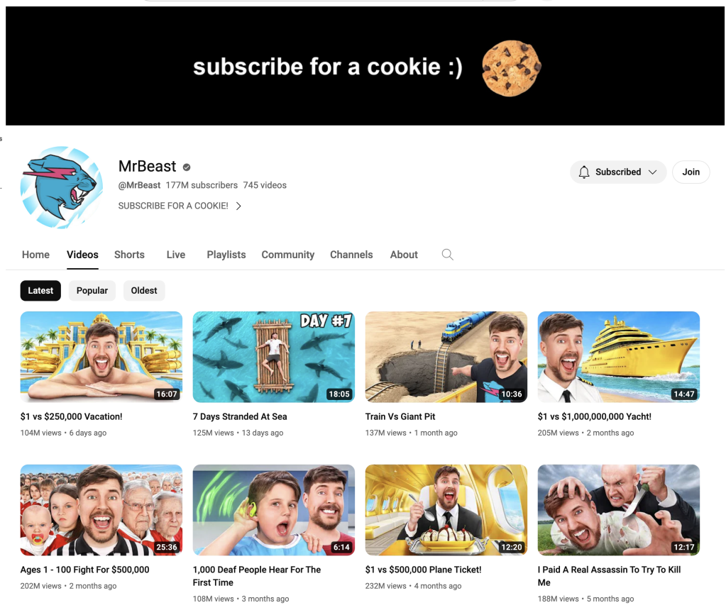 It’s interesting to see that besides the US, Asian (i.e. Korea, India, Pakistan) YouTubers dominate the Top 20 and there isn’t a very marked trend in terms of volume of videos, views and subscribers vs earning potential. Save for a handful of the names, most were new to me, so I looked up a few on YouTube. One interesting thing I noticed was how important short form content has become…for example, the top YouTuber on the list “KIMPRO” now has over 1.7k videos with over 22.6bn views (as of today) but only 11 of those videos are traditional long form format…everything else is in the YouTube Shorts category.