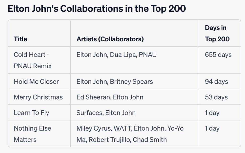 Prompt: Does Elton John have any collaborations that have featured in the charts?