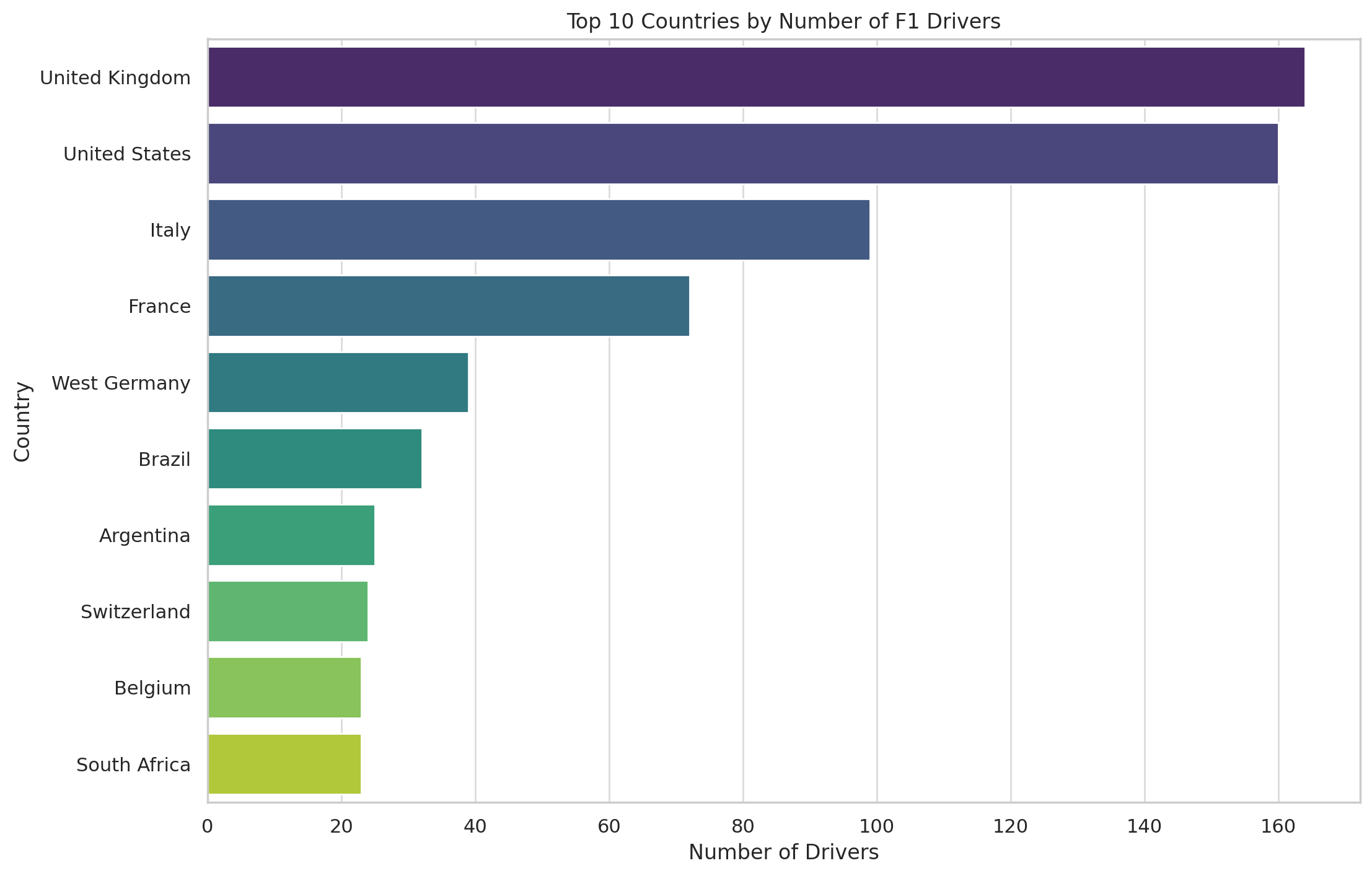 Our dataset is like the cockpit of an F1 car—packed with dials, switches, and stats. We’ve got info on 868 unique drivers from 47 countries, and oh boy, does it have stories to tell!