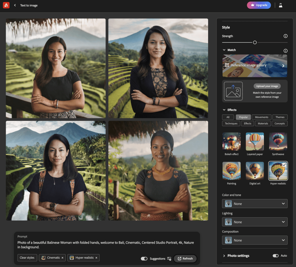 Adobe now has Firefly Image 2 out as their latest text to image generation model. Here’s what it produced…pretty realistic (especially with the Hyperrealistic option chosen), however the images look nothing like a Balinese Woman.