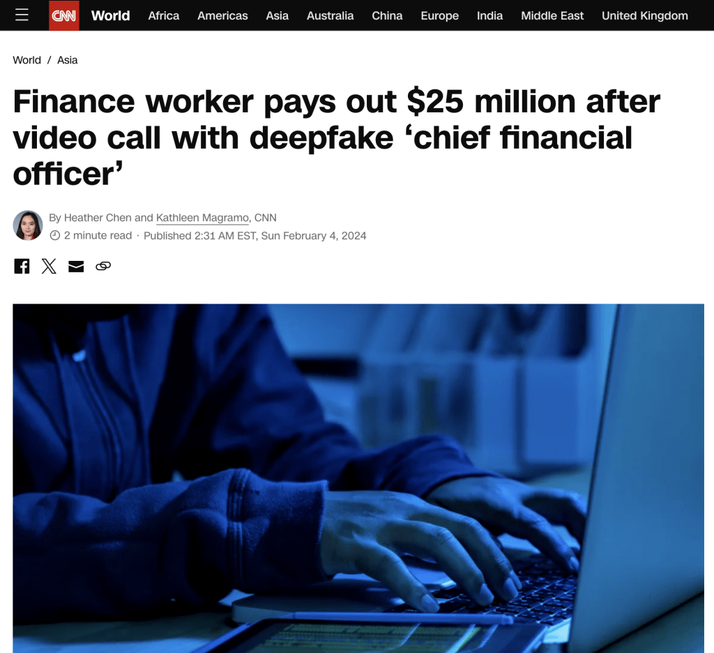 In one example, a multinational company’s finance worker was deceived into transferring $25 million to scammers who used sophisticated deepfake technology to impersonate the company’s CFO and other colleagues during a video conference call. This incident highlights the increasing threat of deepfakes being used in elaborate fraud schemes. See CNN for more.