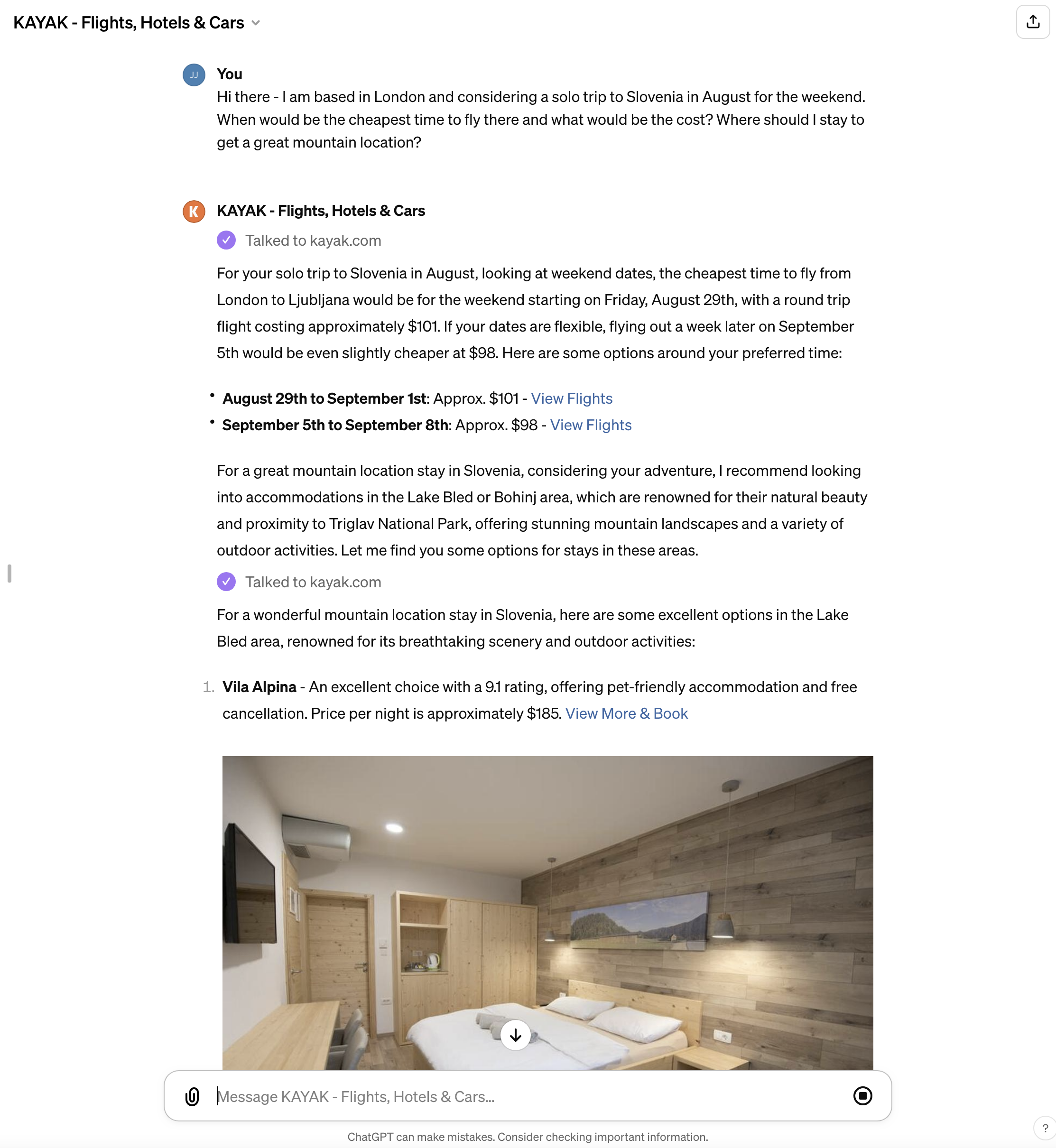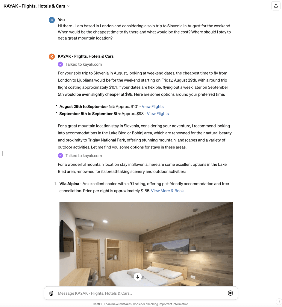 As we explore more AI-assisted holiday planning, the possibilities seem limitless. From beginners getting their feet wet with chatbots like ChatGPT, to advanced travelers harnessing the power of custom GPTs and plugins, AI is revolutionizing how we plan our vacations. Not only does it make the process easier and more efficient versus having to rely on traditional search and specialist websites, but it also opens up new avenues for personalized travel experiences. As AI technology continues to evolve, we can only imagine how much smoother and more exciting holiday planning will become. I’d personally love to get to a stage where I can customize my own AI assistant to know all my needs, preferences and wishlist items, so it can go off and do a lot of the heavy lifting for me, including negotiating with other systems & bots, plus making the bookings I approve. I don’t think we’re very far off from that…give it another couple of years!