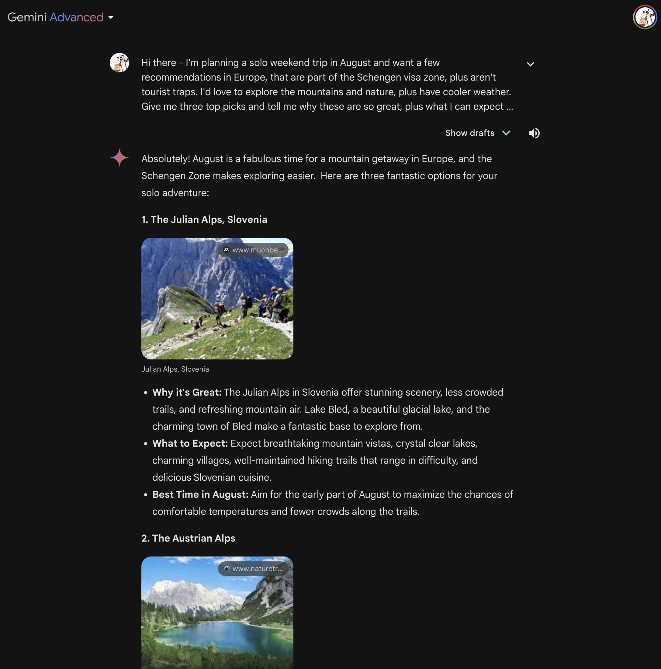 For those new to using AI for holiday planning, chatbots like ChatGPT, Google Gemini, Claude, Pi and others offer a pretty friendly and interactive way to start. They can answer questions, provide travel recommendations based on preferences and budget, and even assist with itinerary planning.