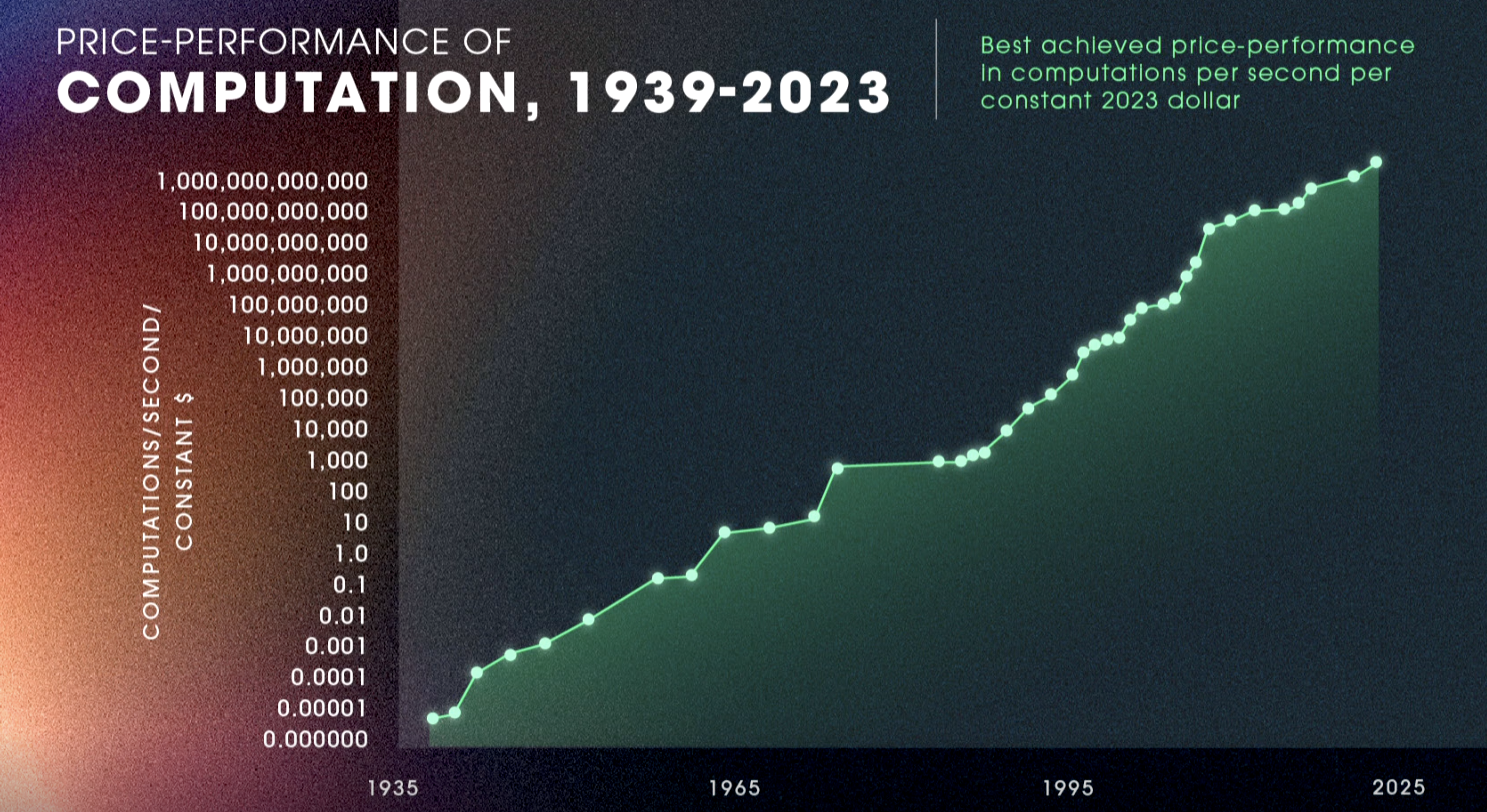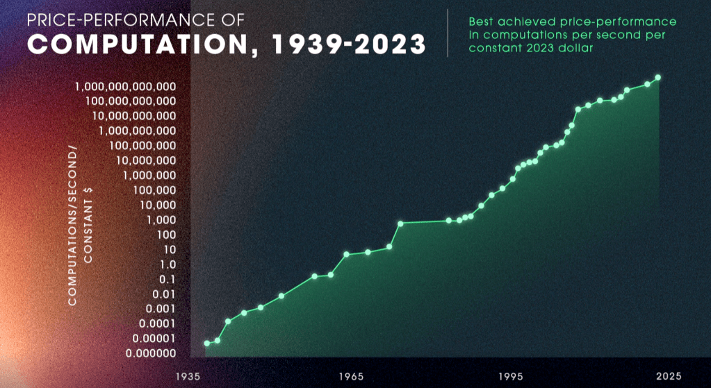 The mind bending thing is that Ray’s predictions have mainly stayed on track…particularly the exponential growth we’ve seen in computing power, at ever reducing cost. e.g. Nvidia’s latest B200 GPU can perform up to 11.5 quintillion calculations per second as part of their new generation of DGX SuperPOD computers.