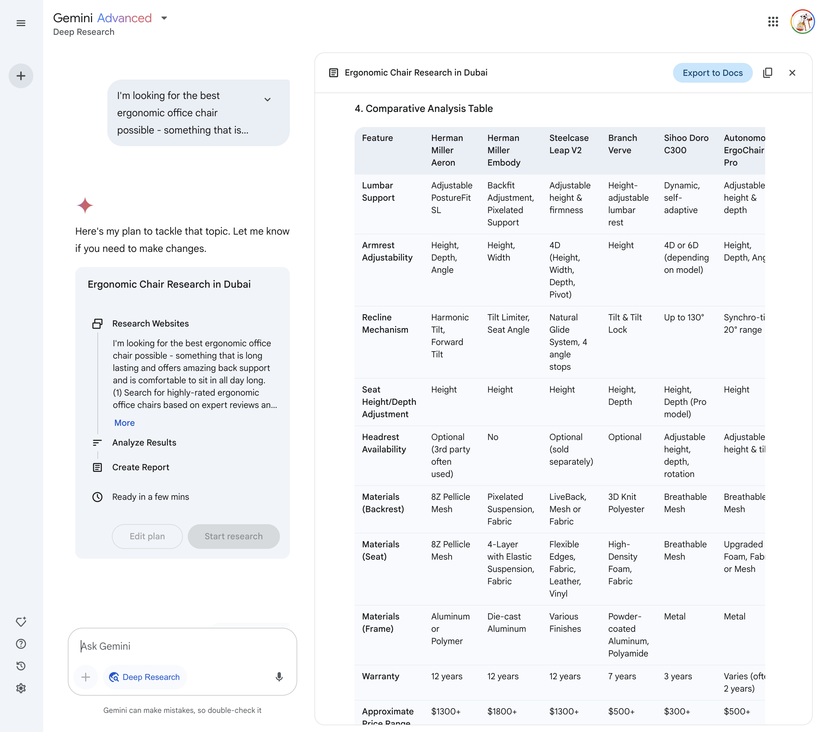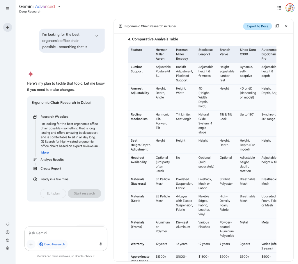 Whether you’re picking a laptop, an ergonomic chair, or the best noise-canceling headphones for under $200, deep research AI ensures you make a purchase you won’t regret.