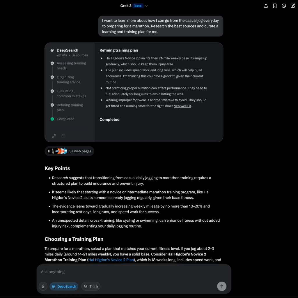 Since publishing the last article, Google Gemini has released an updated set of 2.0 models, including an improved Deep Research option. Grok also does a decent job with its DeepSearch function and Perplexity offers a few free enhanced searches per day, which is pretty sweet. Overall, though, I still find ChatGPT Deep Research probably does the best job of combining deep search with thoughtful analysis.