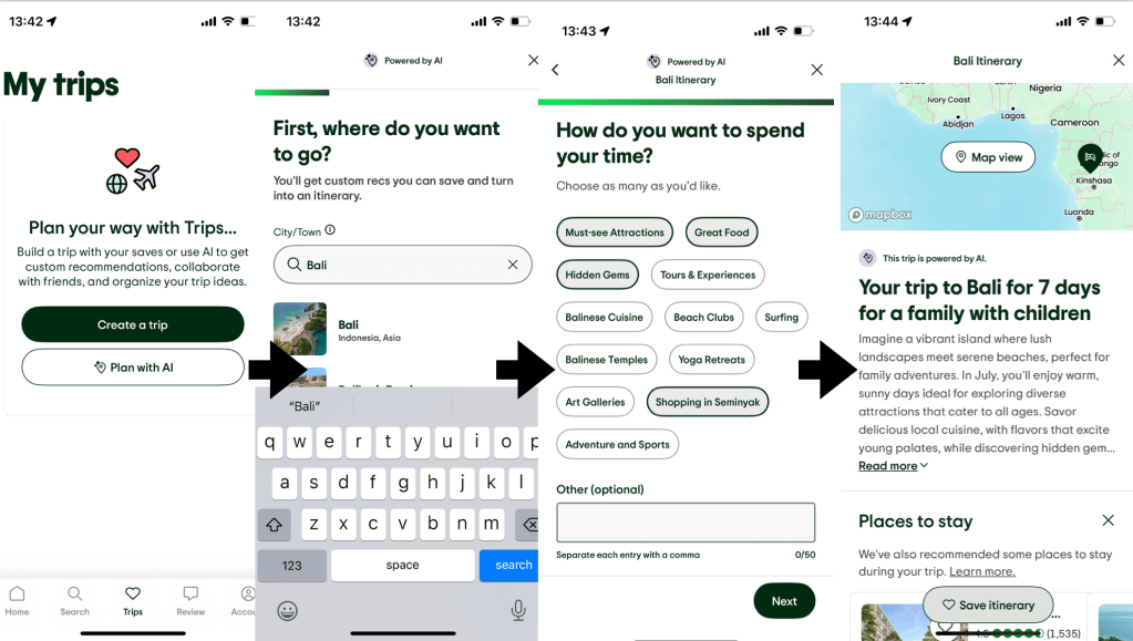 Tripadvisor, too, has quietly integrated trip and itinerary curation in a way that feels more like a seasoned local sharing tips than an LLM awkwardly reading from a script. The experience is smooth, helpful, and blessedly free of AI jazz hands.