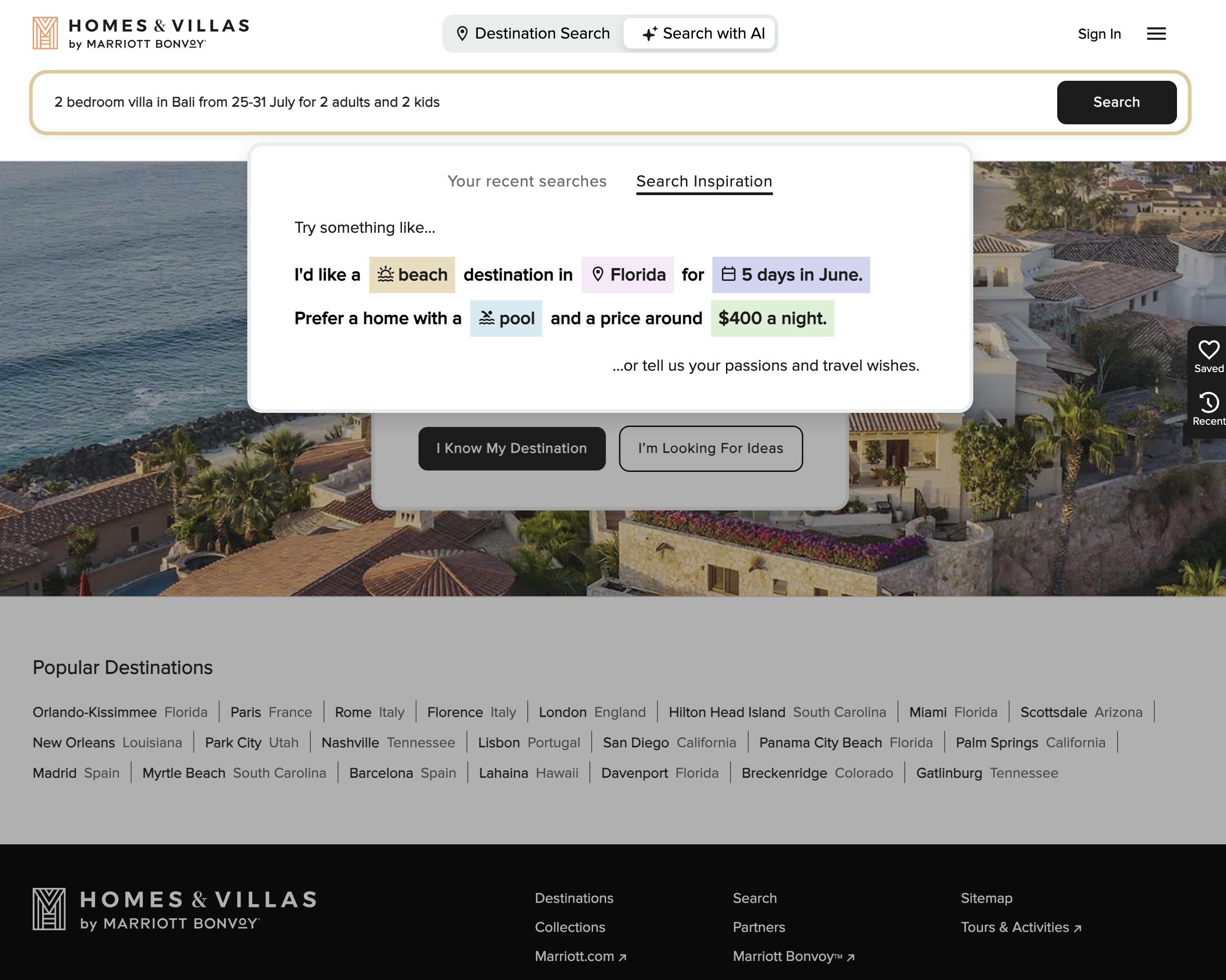 Or Booking.com, whose AI-powered review summaries and smart filters mean you no longer have to scroll through 127 posts about “great location!” and “decent breakfast” to find out if the shower pressure will ruin your morning. Marriott’s Homes & Villas site has rolled out similar natural language search features, making it easier for users to ask real-world questions like “family-friendly villas for 2 adults and 2 kids with a pool” and actually get relevant results quicker than having to sort through loads of filters.