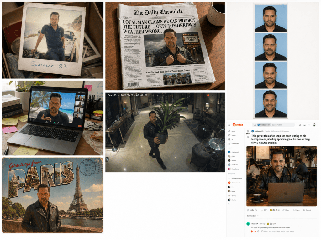 One thing to be upfront about: I deliberately used an AI-generated version of myself throughout this post rather than my real photo. A slightly hunkier, Mad Max-inspired alter ego, because if you’re going to experiment with AI-generated images of yourself, keeping a clear line between your real identity and AI playtime feels like the responsible move. It’s also just more fun this way. Every image you see below is entirely AI-generated, both input and output. Nothing real was harmed in the making of this blog post.