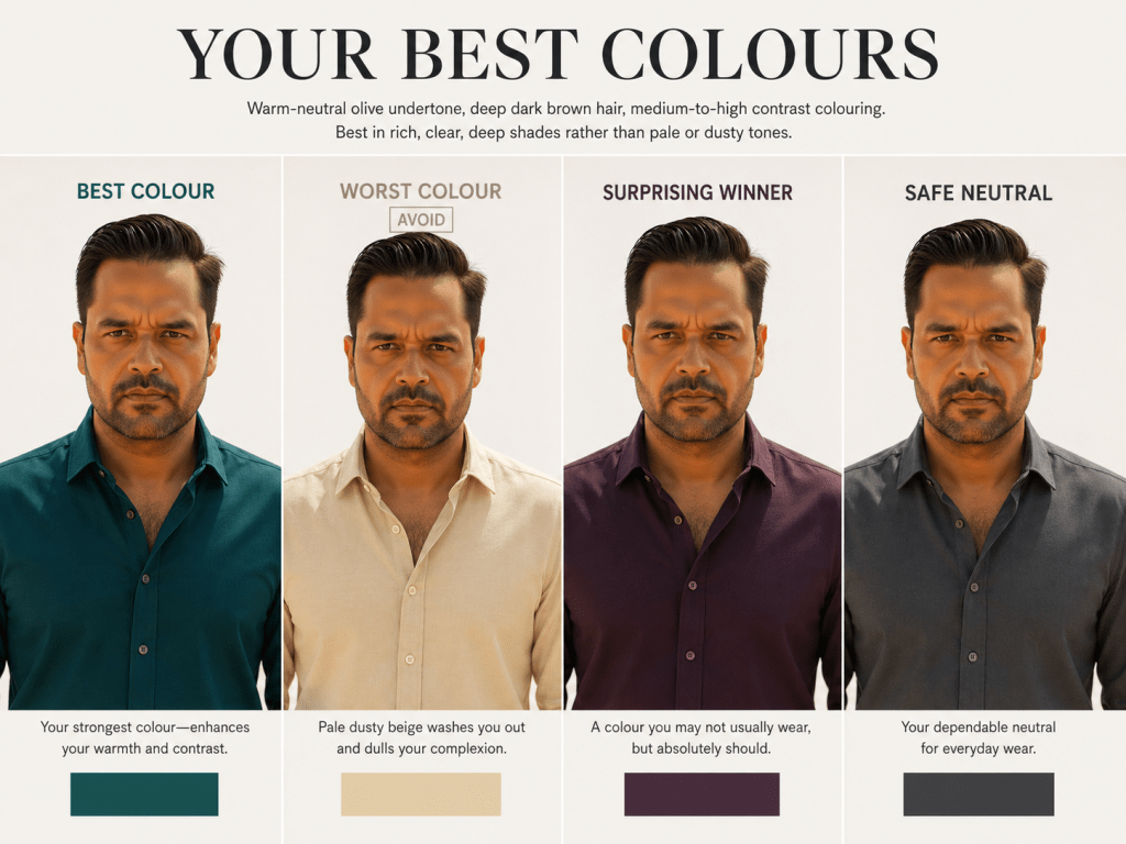 It gets better. I also asked for a colour analysis. Turns out deep teal is apparently my best colour, pale dusty beige is actively working against me (noted), and plum is a “surprising winner” I’d probably never pick on my own. Each panel includes a colour swatch.